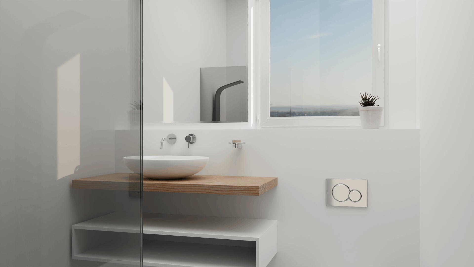 * Bitte beachten Sie: Sämtliche Fotos auf dieser Website wurden vom Plan der Wohnung dreidimensional entwickelt und zeigen eine mögliche Variante der Einrichtung. Die Visualisierung soll dazu dienen, Ihnen die Wirkung der Räume besser zu verdeutlichen. Selbstverständlich sind diese verwendeten Einrichtungsgegenstände nicht Gegenstand unseres Wohnungs-Angebots. Details und optionale Leistungen zu möglichen Ausstattungsvarianten finden Sie untenstehend.