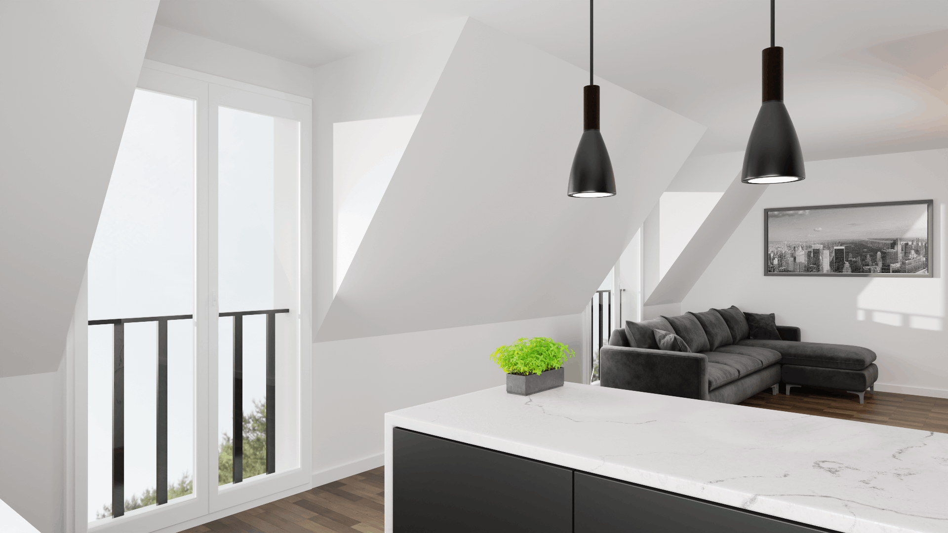 * Bitte beachten Sie: Sämtliche Fotos auf dieser Website wurden vom Plan der Wohnung dreidimensional entwickelt und zeigen eine mögliche Variante der Einrichtung. Die Visualisierung soll dazu dienen, Ihnen die Wirkung der Räume besser zu verdeutlichen. Selbstverständlich sind diese verwendeten Einrichtungsgegenstände nicht Gegenstand unseres Wohnungs-Angebots. Details und optionale Leistungen zu möglichen Ausstattungsvarianten finden Sie untenstehend.