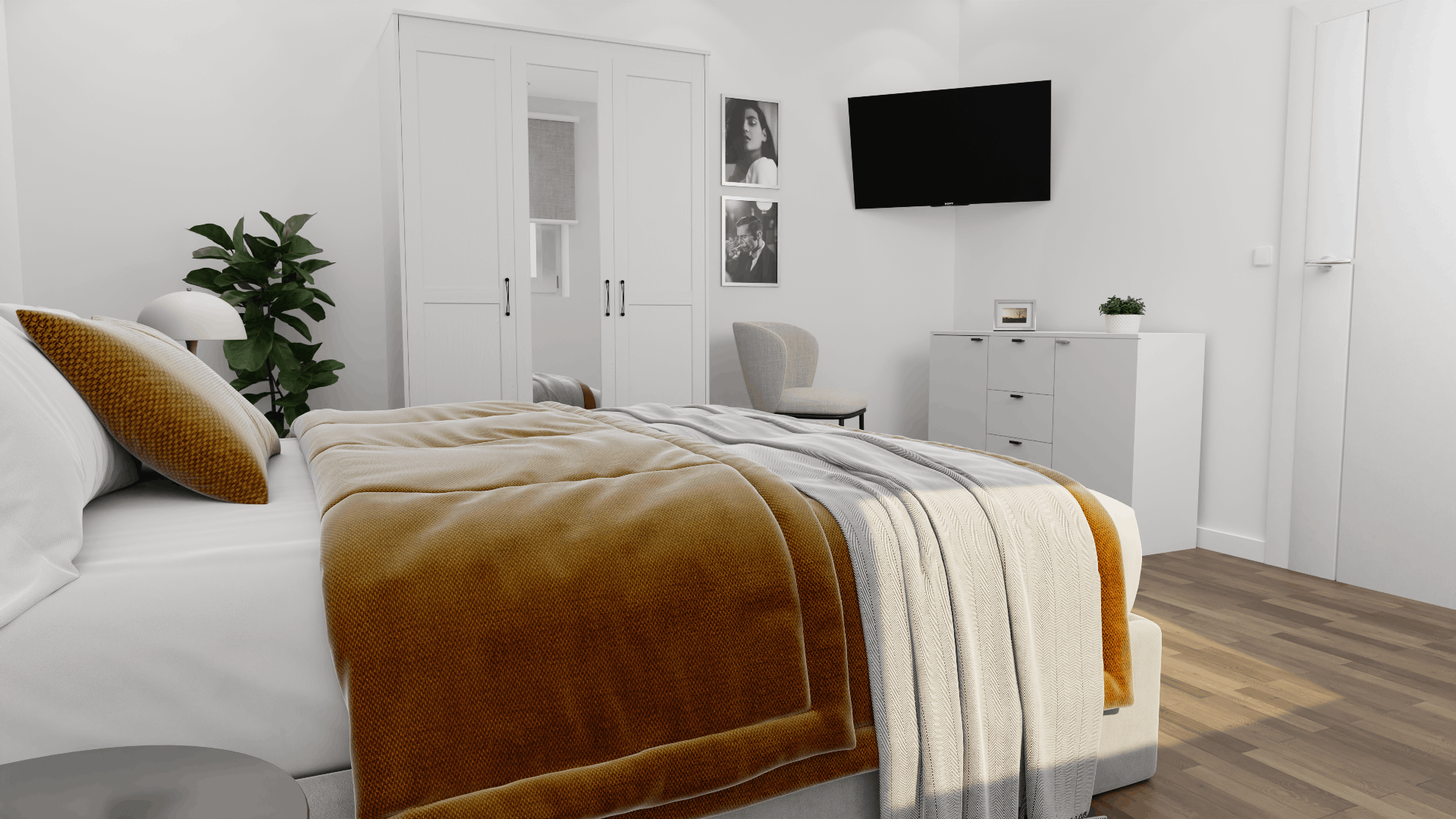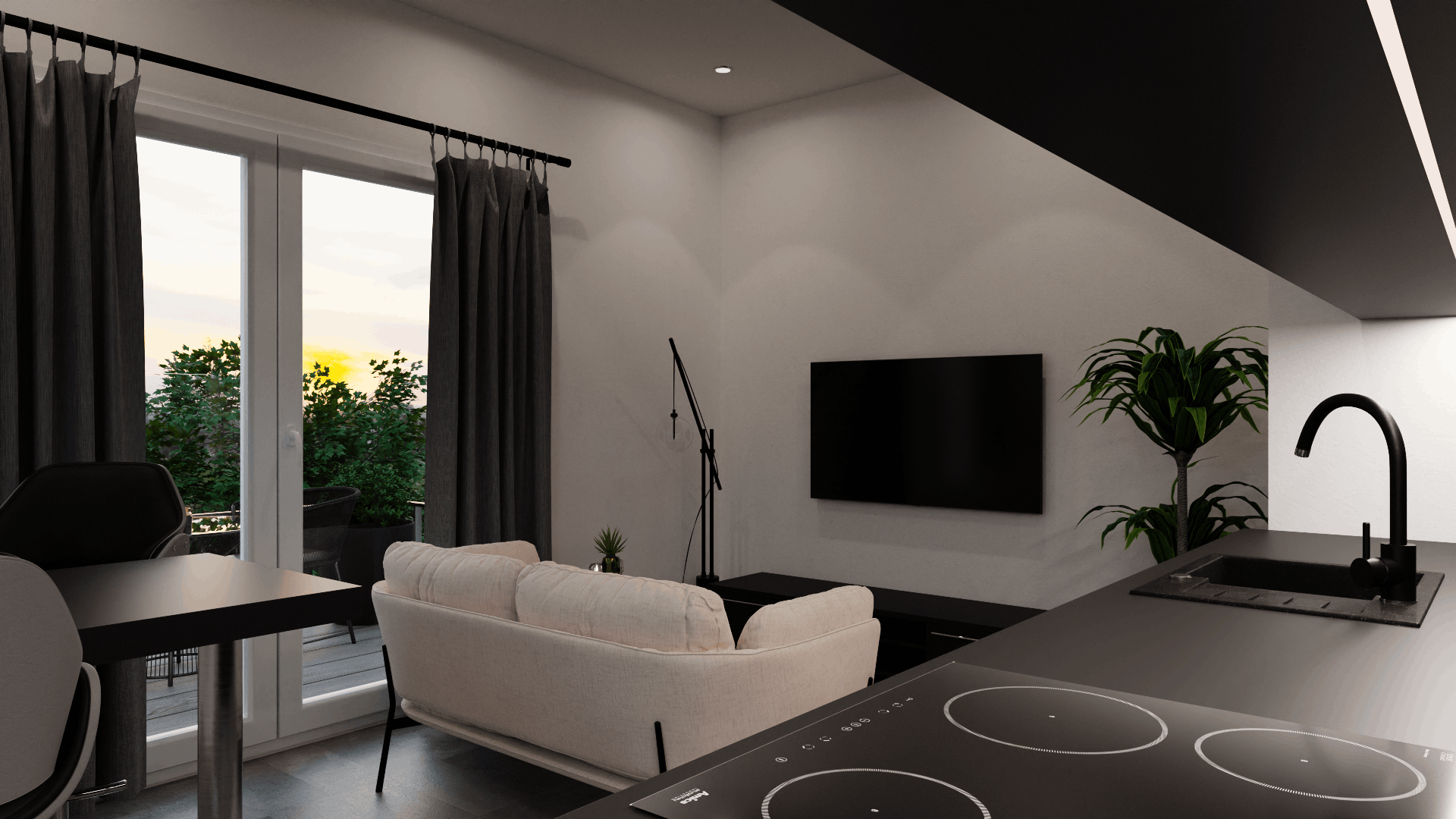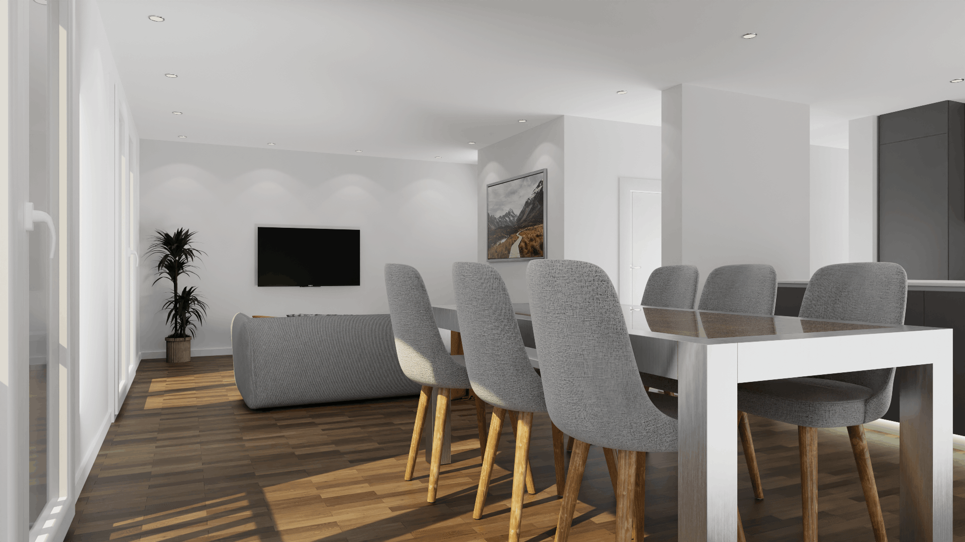 * Bitte beachten Sie: Sämtliche Fotos auf dieser Website wurden vom Plan der Wohnung dreidimensional entwickelt und zeigen eine mögliche Variante der Einrichtung. Die Visualisierung soll dazu dienen, Ihnen die Wirkung der Räume besser zu verdeutlichen. Selbstverständlich sind diese verwendeten Einrichtungsgegenstände nicht Gegenstand unseres Wohnungs-Angebots. Details und optionale Leistungen zu möglichen Ausstattungsvarianten finden Sie untenstehend.