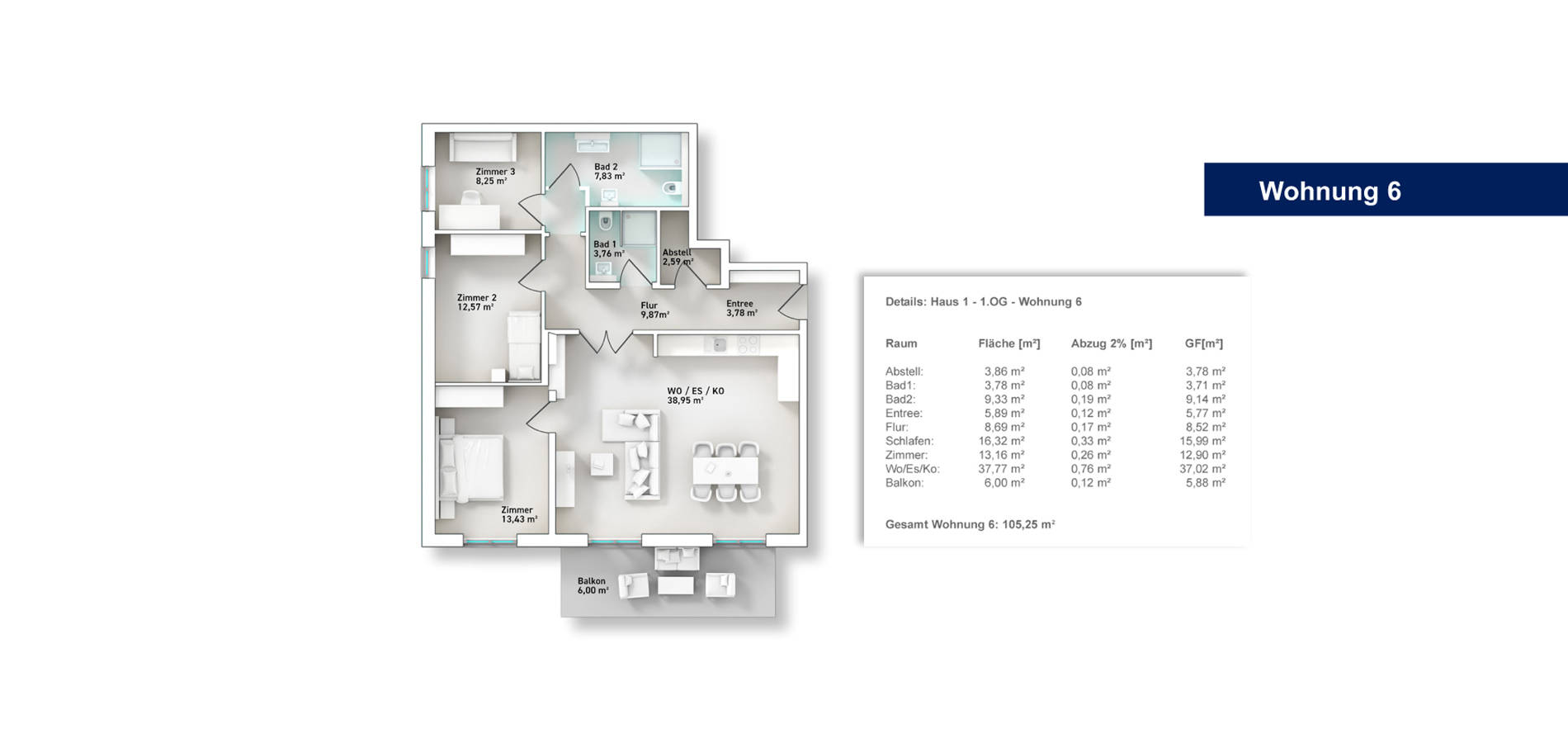 Bitte beachten Sie, die Wohnungen im Slider sind für Desktop-Systeme optimiert. Gerne können Sie im downloadfähigen Bereich - oder direkt hier das >>> Exposé <<<zu unserem Wohnparkprojekt Treversi I in Trier downladen.